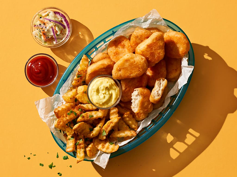 Vegetariska Quorn Nuggets kommer i en förpackning med 30 nuggets. Det är bäst och enklast att tillaga dem i ugn direkt från frysen, det tar cirka 15 minuter. Servera med pommes frites, en god dippsås och ketchup. Eller som i många barnfamiljer - med pasta, ketchup och morotsstavar. Quorn Nuggets har låg halt av mättat fett och är både en protein- och fiberkälla.