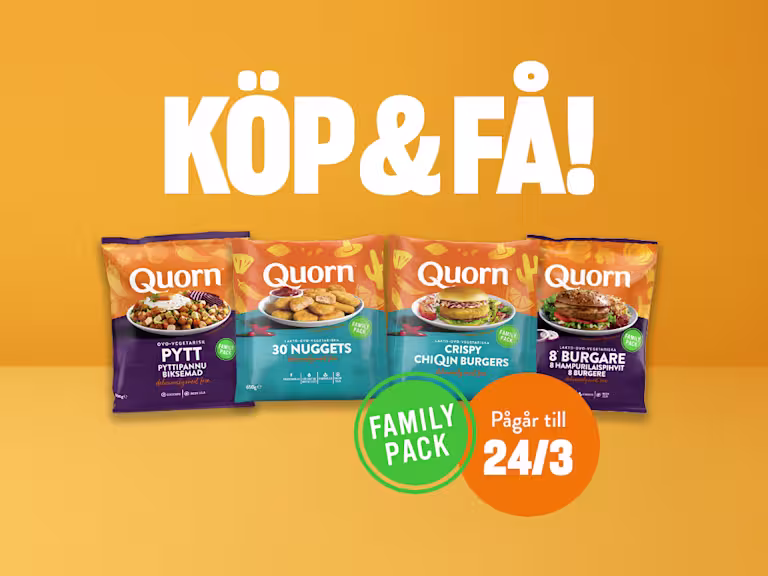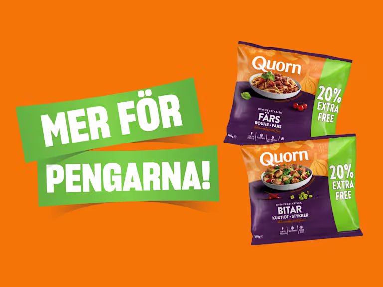 Vi tänker såhär: Om alla gör en liten förändring gör alla små förändringar tillsammans en jättestor skillnad. Varje måltid, varje portion och tugga gör skillnad. Starta ugnen och duka bordet och gör något bra för planeten – en tugga i taget. Quorn. Helping the planet one bite at a time.