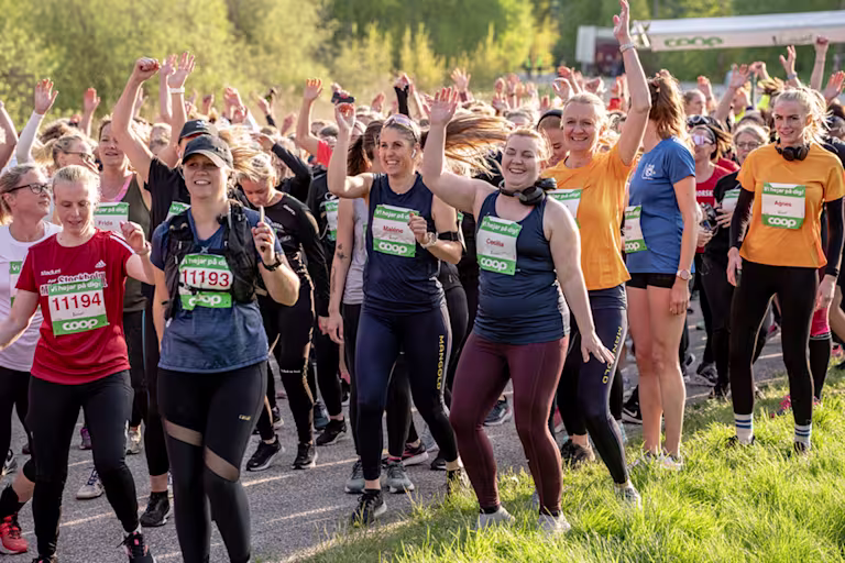Vårruset har distanser för alla och många springer tillsammans med vänner eller kollegor. Alla väljer själva om de vill promenera, jogga eller springa distanserna 2,5 eller 5 kilometer – det är rörelseglädje som är i fokus.