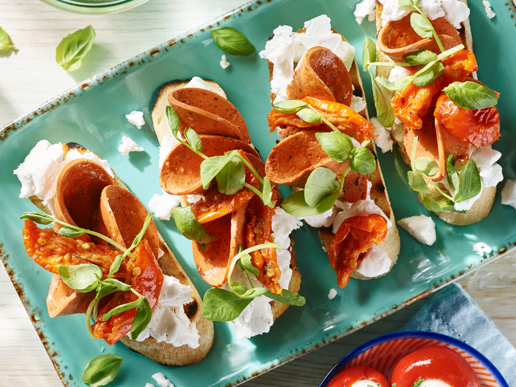 Quorns Veganska Bruschetta med Pepperoni och Alternativ Fetaost