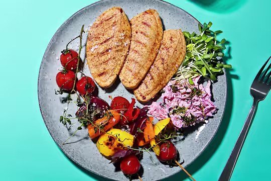 - Grilla filéerna och grönsaksspetten tills de fått fin färg.