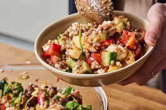 Michelle Coleman, dubbel VM-guldmedaljör, tipsar om en av hennes go to-rätter – en snabb och enkel vegetarisk sallad som bara tar 15 minuter att slänga ihop och dessutom är snäll mot planeten. Michelle maxar gärna sina måltider med nyttigheter och smak och hennes recepttips tenderar ha hög craving-faktor. Använd Quorn Färs för att laga en proteinrik sallad som alla kommer att gilla.